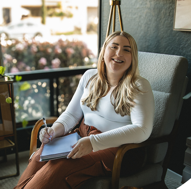 Welcome! If you’re a millennial or Gen Z woman who feels anxious, stuck, or overwhelmed, you’re in the right place. I’m Katy Caslav, a licensed clinical social worker based in Carlsbad, CA, and I work with women who want more clarity, comfort, and connection in their lives.